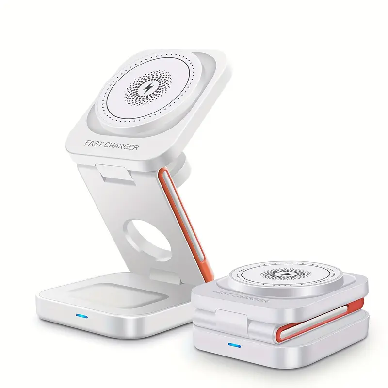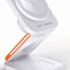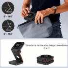 Posiada trzy regulowane osie, które łączą trzy moduły ładowania w jednej kompaktowej stacji. Dzięki temu możesz ładować swoje urządzenia w różnych trybach: leżąc płasko, stojąc lub pod dowolnym kątem, który preferujesz. Dzięki regulowanemu o 360° kątowi widzenia możesz łatwo przełączać się między trybem pionowym a poziomym, aby znaleźć idealny kąt. Ładowarka 3 w 1 oferuje maksymalną elastyczność