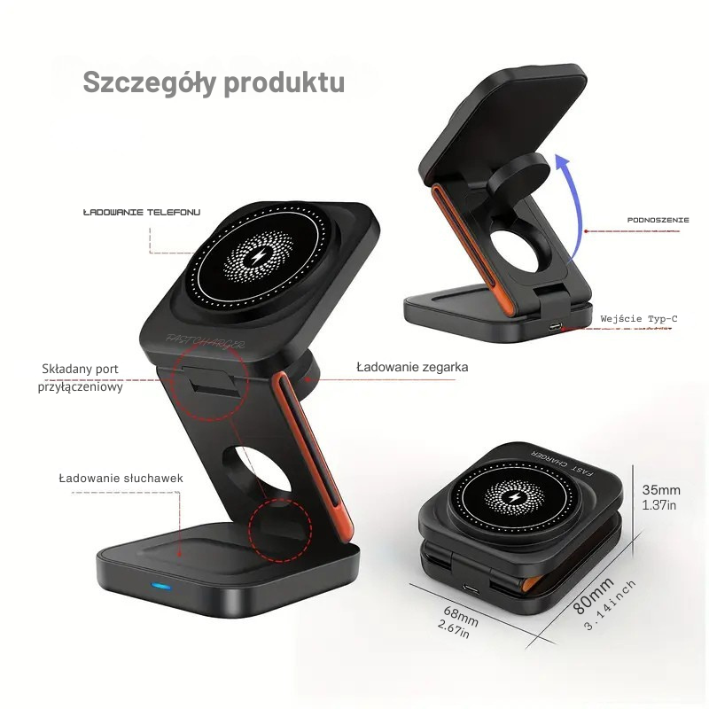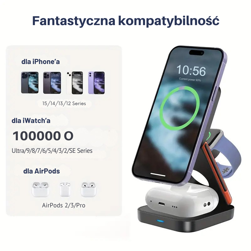 ✅ Ładuj 3 urządzenia jednocześnie – smartfon (MagSafe), słuchawki oraz smartwatch